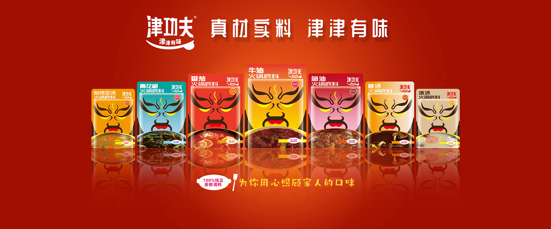 廣東津功夫食品有限公司,位于廣東省肇慶市國家高新區(qū),占地面積約2.5萬平方米,是以專業(yè)研發(fā)、生產、銷售復合調味品及火鍋底料為主的現代化食品企業(yè)。      "津功夫"為公司注冊商標。公司擁有四大調味品專用生產車間及國內領先的生產工藝;裝備有反應釜、電磁炒鍋、天然氣炒鍋、蒸煮生產線、各型號全自動包裝機、冷封生產線等先進生產設備,年生產能力達2萬噸;配備有微檢、重金屬、金檢、水分、折光等檢測設備。        公司依照國家食品安全法,采用GMP及ISO管理標準,已先后通過ISO-22000質量管理體系認證、HACCP認證。        公司研發(fā)團隊由公司創(chuàng)始人親自帶隊,立足當下,不斷創(chuàng)新,將在調味品行業(yè)20余年的潛心研究成果變?yōu)楝F實,精品輩出,為客戶創(chuàng)造更多、更好的價值。公司以川味調味品為根,以客戶需求為本,開發(fā)了復合調味品及火鍋底料兩大板塊的系列產品。復合調味品板塊涵蓋: